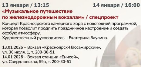 На жд-вокзалах Красноярска пройдут бесплатные концерты• 13 января в 13:15, Кра…
