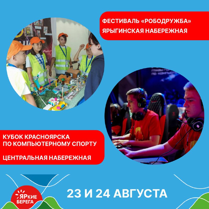 🎉 23-24 августа в Красноярске пройдут два ярких события🔹 Фестиваль «Рободружба», Ярыгинская набережная. Открытие: 23 августа в 17:0023-24 августа с 12:00 до 18:00 будут работать интерактивные локации.🔹 Кубок Красноярска по компьютерному спорту, Центральная набережная. Открытие: 23 августа в 20:0023-24 августа с 12:00 до 19:00 будут работать интерактивные локации. Церемония закрытия и награждения победителей пройдёт 24 […]