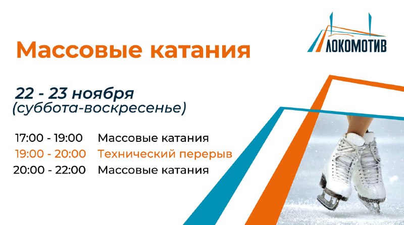Массовые катания пройдут 22 и 23 ноября — с 17:00 до 19:00 и с 20:00 до 22:00.